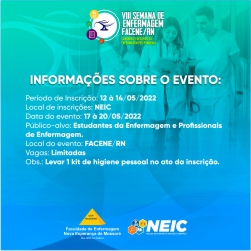 NEIC abrirá inscrições para a VIII Semana de Enfermagem da FACENE/RN.