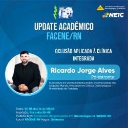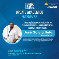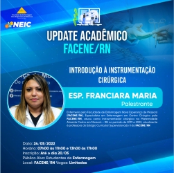 O Núcleo de Extensão e Iniciação Científica (NEIC) divulga os minicursos do Update Acadêmico do mês de maio de 2022. Os minicursos serão destinados aos discentes dos cursos de Educação Física, Enfermagem, Nutrição e Odontologia da FACENE/RN. Os alunos deverão se inscrever no NEIC. As inscrições iniciam dia 09 de maio de 2022. Para realizar a inscrição o aluno deverá trazer um kit de higiene pessoal que será doado à instituição beneficente. VAGAS LIMITADAS!